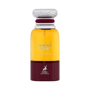 Flaming Elixir by Maison Alhambra is a daring, luxurious fragrance with a **cherry-smoky leather** twist. It opens with sweet yet sharp sour cherry and saffron. The heart blends creamy & bold notes of leather, osmanthus and apricot. The base closes with a deep trail of smoke, woody accords and cypress oil. Perfect for those who like rich gourmand fruit blended with leather and woody intensity. Buy original Maison Alhambra perfume Malaysia – Middle Eastern style scent & premium quality.
