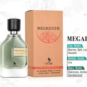 Experience the vibrant essence of Megadose Eau De Parfum by Volarรฉ, a fragrance that embodies energy and sophistication. The journey begins with an explosion of juicy citrus and refreshing bergamot, which awakens the senses and sets a lively tone.