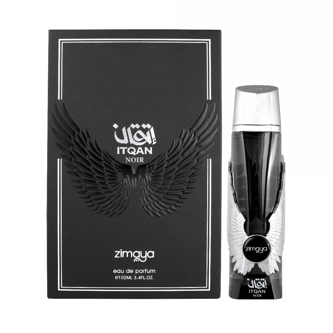 Itqan Noir by Zimaya Perfumes is a modern woody amber fragrance crafted for confident and elegant men. It opens with crisp bergamot and cardamom, blending into a heart of lavender and cedarwood, and finishes with deep amber, patchouli, and musk. This long-lasting EDP gives an elegant and masculine aroma that fits perfectly with Malaysia’s tropical weather. Buy original Zimaya Perfumes in Malaysia from us with fast delivery and Oriental-style perfume.
